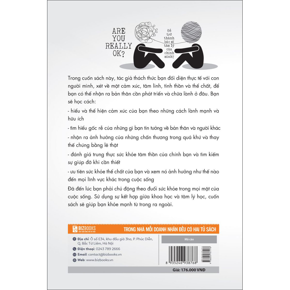 Cuốn sách "Are You Really OK? - Để trở thành bác sĩ tâm lý của chính mình" sẽ là một hành trình đầy sức mạnh và ý nghĩa, mở ra những khám phá về sự tự nhìn nhận và sự nhạy bén về bản thân, để bạn có thể sống một cuộc sống thực sự đầy đủ và hạnh phúc. Cuốn sách sẽ đưa bạn vào cuộc phiêu lưu khám phá về sự tự nhìn nhận và nhận biết về bản thân. Chúng ta sẽ khám phá cách thông qua việc hiểu rõ về cảm xúc, suy nghĩ và hành vi của chúng ta, chúng ta có thể tạo ra một tâm trạng tốt hơn và xây dựng một cuộc sống hạnh phúc và thành công