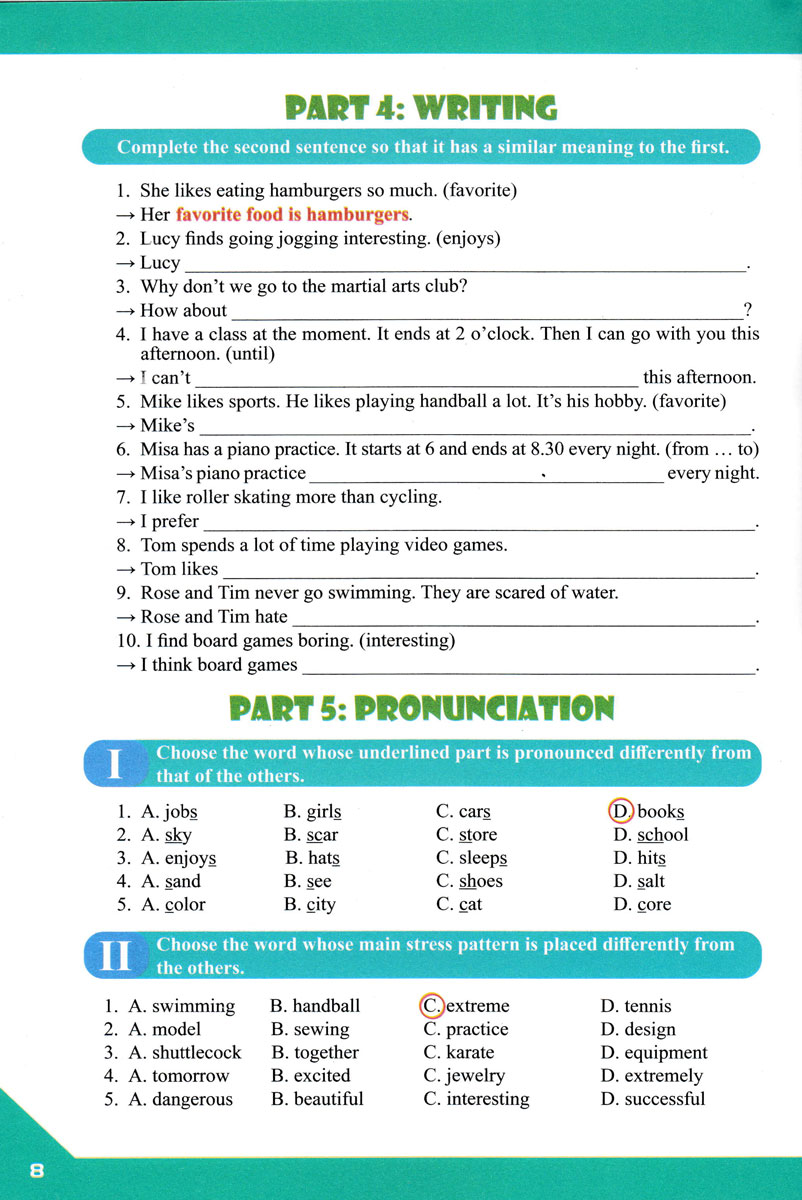 “BÀI TẬP BỔ TRỢ TOÀN DIỆN TIẾNG ANH 8 - Người bạn đồng hành của các em học sinh” theo Chuẩn Chương trình giáo dục phổ thông môn Tiếng Anh năm 2018 của Bộ Giáo dục và Đào tạo và đặc biệt bám sát theo từng unit của sách giáo khoa Tiếng Anh 8 theo chương trình mới. Quyển sách sẽ tập hợp đa dạng các bài tập và đề kiểm tra về ngữ âm, từ vựng, ngữ pháp, và đặc biệt là năng lực giao tiếp bằng tiếng Anh.