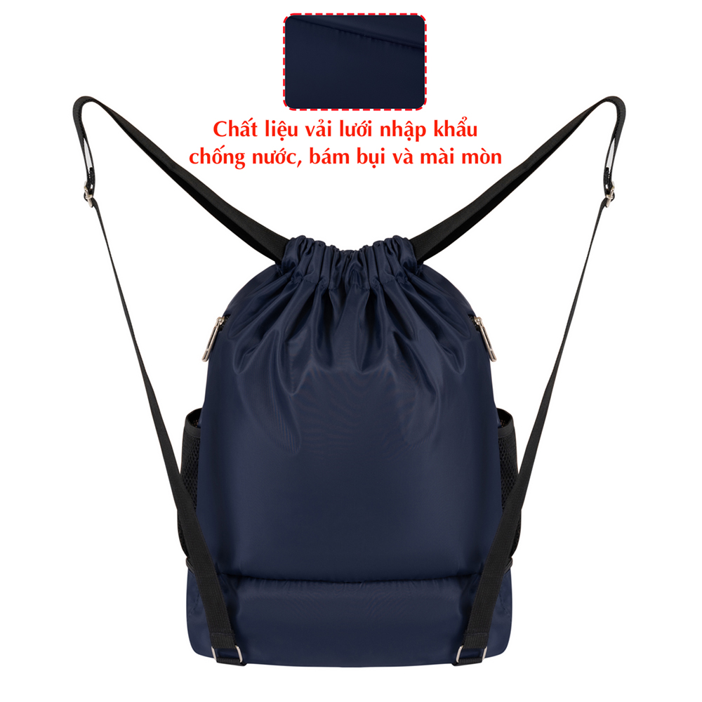 Balo dây rút thể thao chống nước Xbags thích hợp đi tập gym, đá bóng, bóng rổ đa năng Thông tin sản phẩm: Màu sắc: Xanh Đen Kích thước : Dài x Rộng x Cao : 34 x 15 x 46 cm Chất liệu : Vải lưới nhập khẩu chống nước, chống bám bụi, chống mài mòn Form dáng: Thiết kế thể thao, năng động phù hợp với mọi lứa tuổi Thích hợp: Đi học, đi chơi, đi tập thể thao,... Công năng: Ngăn chứa đồ rộng rãi,có ngăn đựng giày riêng, dây rút tiện lợi, khóa kéo bền bỉ, trơn tru, tính thẩm mỹ cao. Mặt sau: Hướng dẫn bảo quản Tránh để trực tiếp các vật có thể lem màu (viết mực, mỹ phẩm) vào lòng túi. Không nên để sản phẩm tiếp xúc nhiều với xà bông. Có thể vệ sinh bằng khăn ẩm và các dung dịch làm sạch đã pha loãng. Trong trường hợp không có sẵn dung dịch làm sạch, có thể pha loãng dầu gội đầu và lau sản phẩm nhẹ nhàng với khăn sạch hoặc dùng cồn cùng một chút ít xà phòng để chà nhẹ lên bề mặt vết bẩn. --------------------------------------- balo dây rút thể thao, balo rút thể thao,