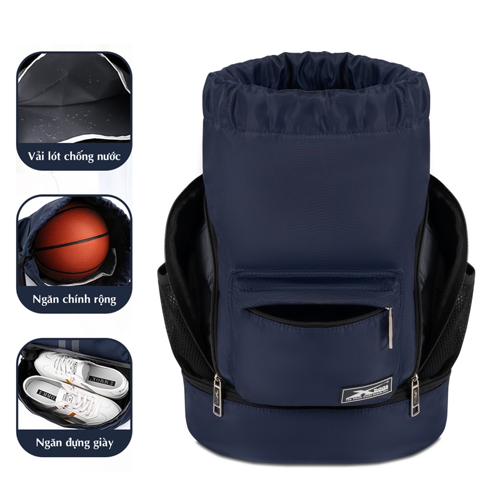 Balo dây rút thể thao chống nước Xbags thích hợp đi tập gym, đá bóng, bóng rổ đa năng Thông tin sản phẩm: Chất liệu : Vải lưới nhập khẩu chống nước, chống bám bụi, chống mài mòn Kích thước : Dài x Rộng x Cao : 34 x 15 x 46 cm Màu sắc: Đen Form dáng: Thiết kế thể thao, năng động phù hợp với mọi lứa tuổi Thích hợp: Đi học, đi chơi, đi tập thể thao Công dụng: Ngăn chứa đồ rộng rãi,có ngăn đựng giày riêng, dây rút tiện lợi,