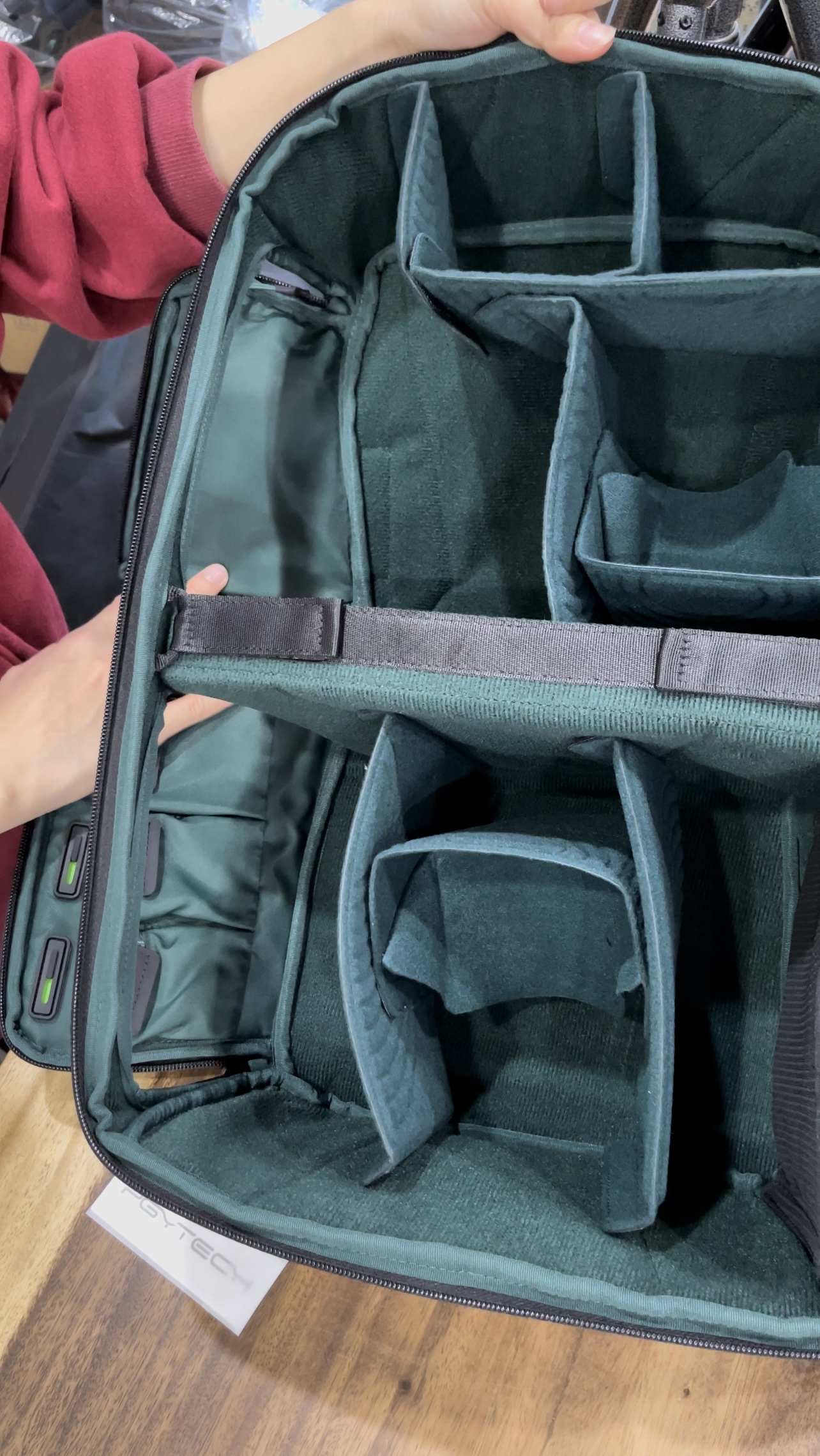 - Không gian dành riêng cho máy ảnh, ống kính, flycam, laptop15,6 inch / 16 inch, gimbal,