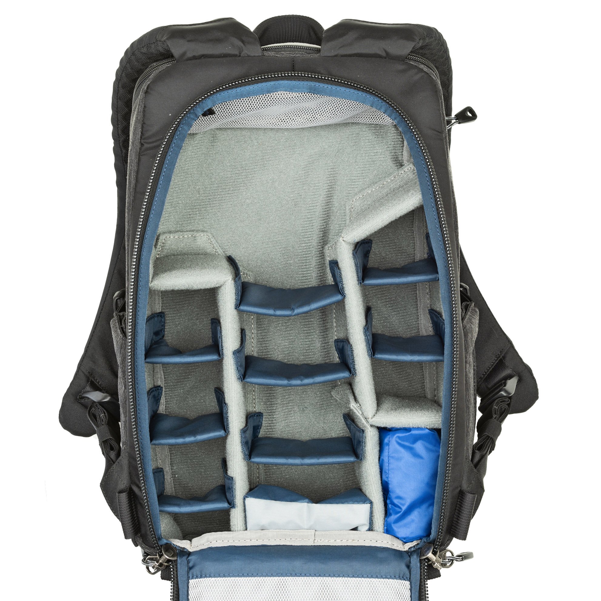 Balo máy ảnh Think Tank Backstory 15 với miệng túi chính ở vị trí phía sau giúp người dùng dễ dàng sắp xếp các thiết bị bên trong , cùng với ngăn phụ phía trên