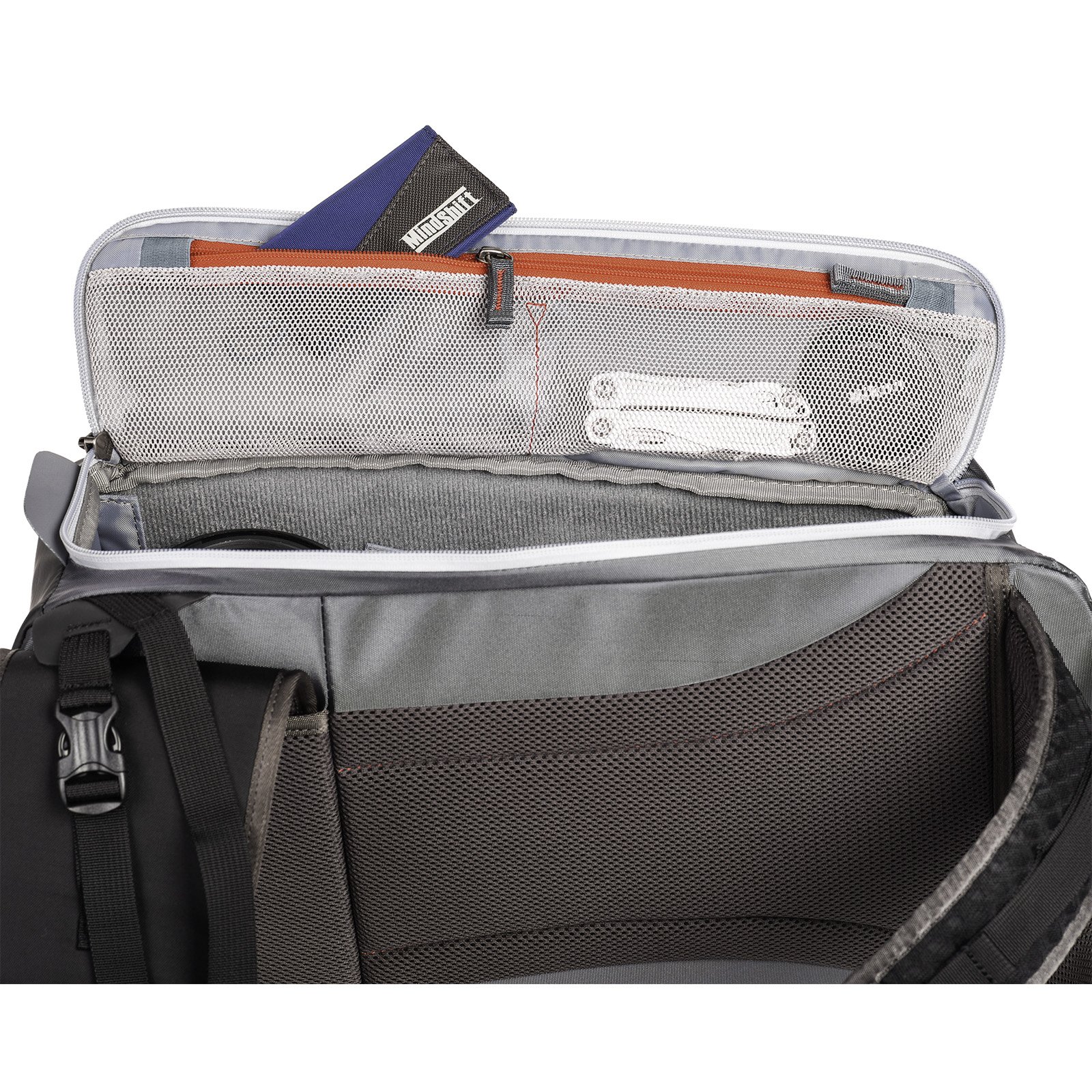 Balo máy ảnh Think Tank Backstory 15 với miệng túi chính ở vị trí phía sau giúp người dùng dễ dàng sắp xếp các thiết bị bên trong , cùng với ngăn phụ phía trên