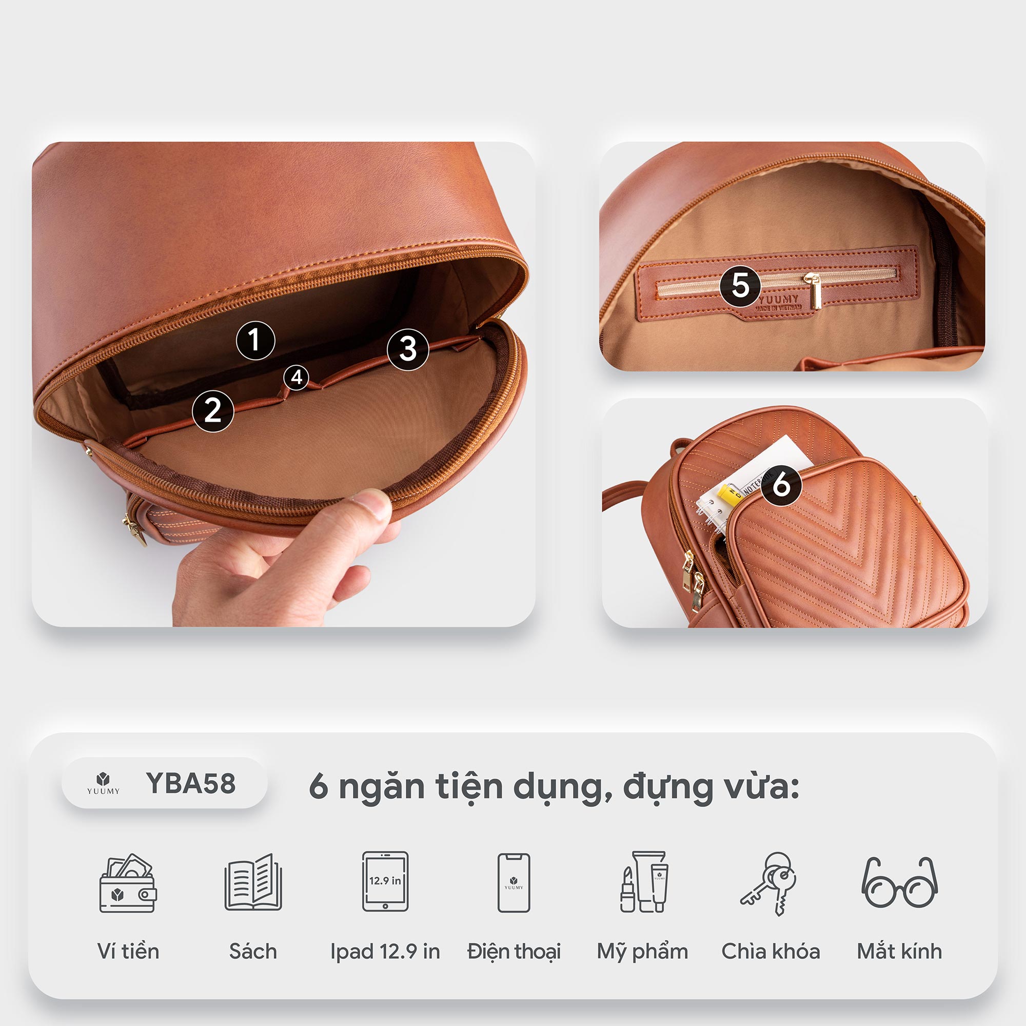 ✨Balo Yuumy ( Thời trang nữ tiện lợi cỡ trung - Balo da Liberal YBA58 )