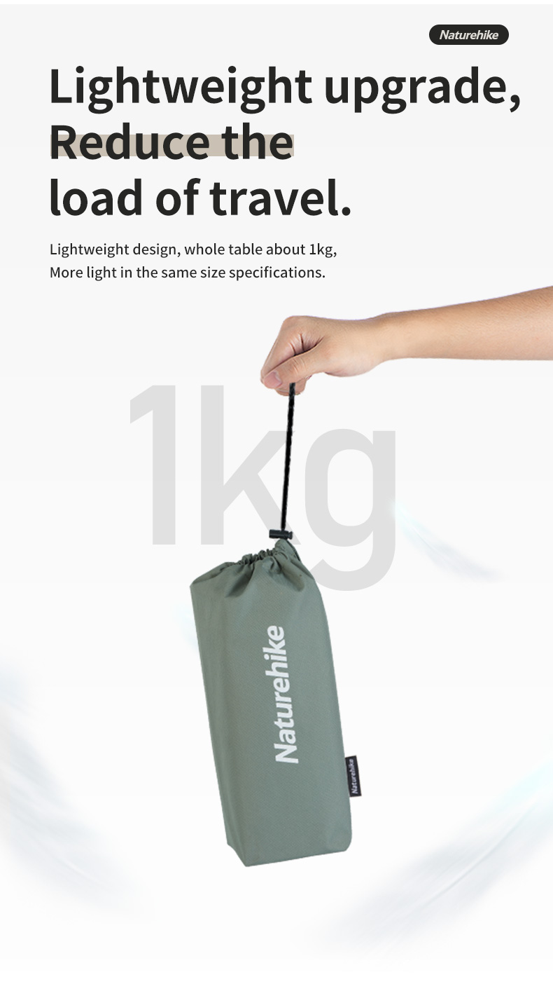 NatureHike CNH22JU050 siêu nhẹ chỉ 1kg, kích thước vô cùng nhỏ gọn bạn có thể bỏ vào balo để mang theo cho các hoạt động ngoài trời như: trekking, hikking, solo , du lịch… Chất liệu