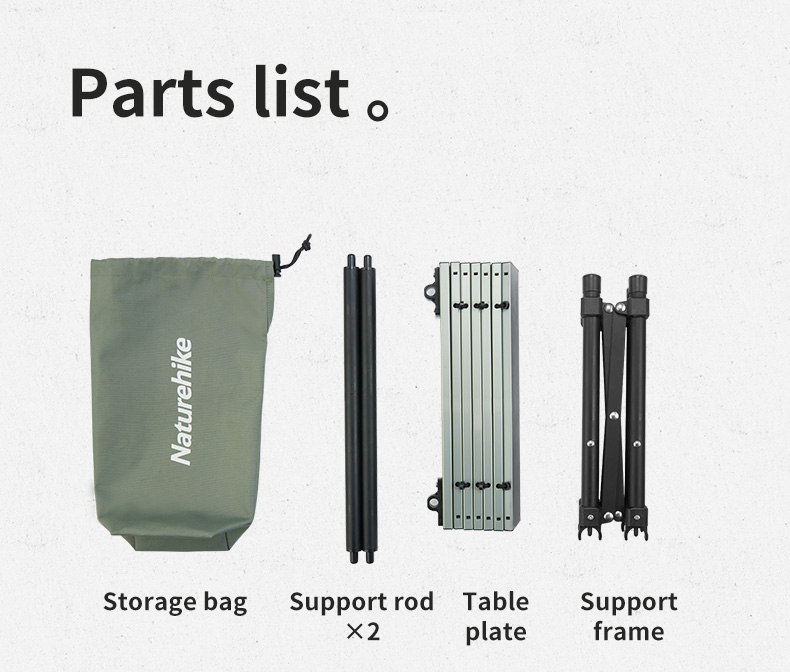 Bàn xếp Inox gấp gọn đi cắm trại, câu cá NatureHike NH19Z008-Z ️Ưu điểm : gọn nhẹ, dễ dàng lắp đặt, dễ vệ sinh, hợp kim nhôm và nhựa ABS bền chắc. ️Thông tin chi