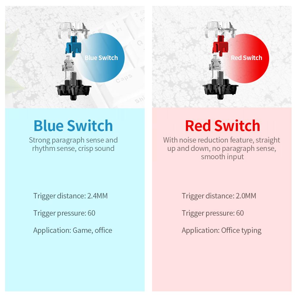 Features: USB wired/BT dual-mode connection, support multiple devices. It can connect wih three devices, easy to switch. 68 keys compact layout, gives the mouse more activity space, independent direction keys make the game control more
