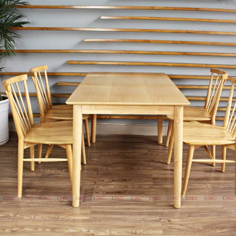 Mô tả sản phẩm - Kích thước bàn 1,20m*80cm, cao 75cm - Kích thước ghế 40*43*80cm - Chất liệu gỗ cao su tự nhiên, chất liệu nệm: simili - Mặt bàn gỗ công nghiệp HDF