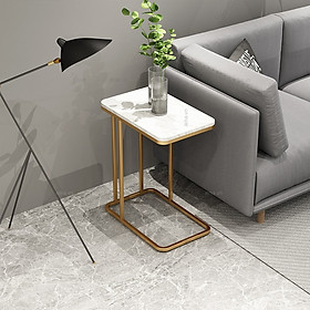 Kích thước: Rộng 30 Dài x Cao 55cm Chất liệu: Chân sắt sơn tĩnh điện Màu sắc: Vàng – đen Mặt bàn: Đá marble