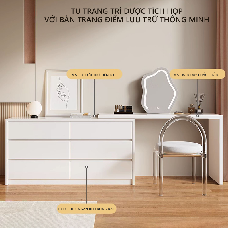 ***Sản phẩm chỉ bao gồm 1 bàn trang điểm và 1 ghế ngồi, không kèm các vật trang trí*** - Sản phẩm thân thiện với môi trường - Sản phẩm đạt tiêu Chuẩn xuất khẩu,