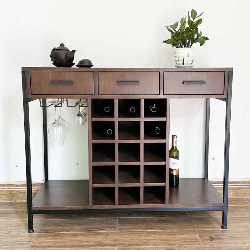 Mua tại TiktokBàn trang trí kết hợp kệ rượu CSTCT050 sở hữu kiểu dáng hiện đại, thiết kế tinh tế thường được sử dụng trong không gian phòng khách hay phòng ăn nhằm tạo điểm nhấn cho không gian thêm hoàn hảo, bàn console có tích hợp các tiện ích khác như có các khay để rượu vang và các tầng treo ly trưng bày các món đồ trang trí yêu thích hay kệ để đồ nhờ trang bị 3 hộc kéo rộng rãi, tối ưu không gian lưu trữ.