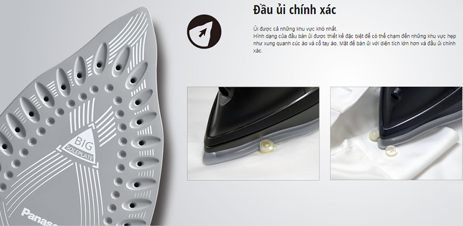 Ngoài ra, bản ủi Panasonic thích hợp với mọi loại vải, có vòng chỉnh nhiệt giúp lựa chọn được mức nhiệt độ phù hợp cho từng loại vải, đèn báo sẽ tự tắt khi đạt mức nhiệt cần thiết, bảo vệ quần áo không bị cháy xém do gặp phải nhiệt độ quá cao.