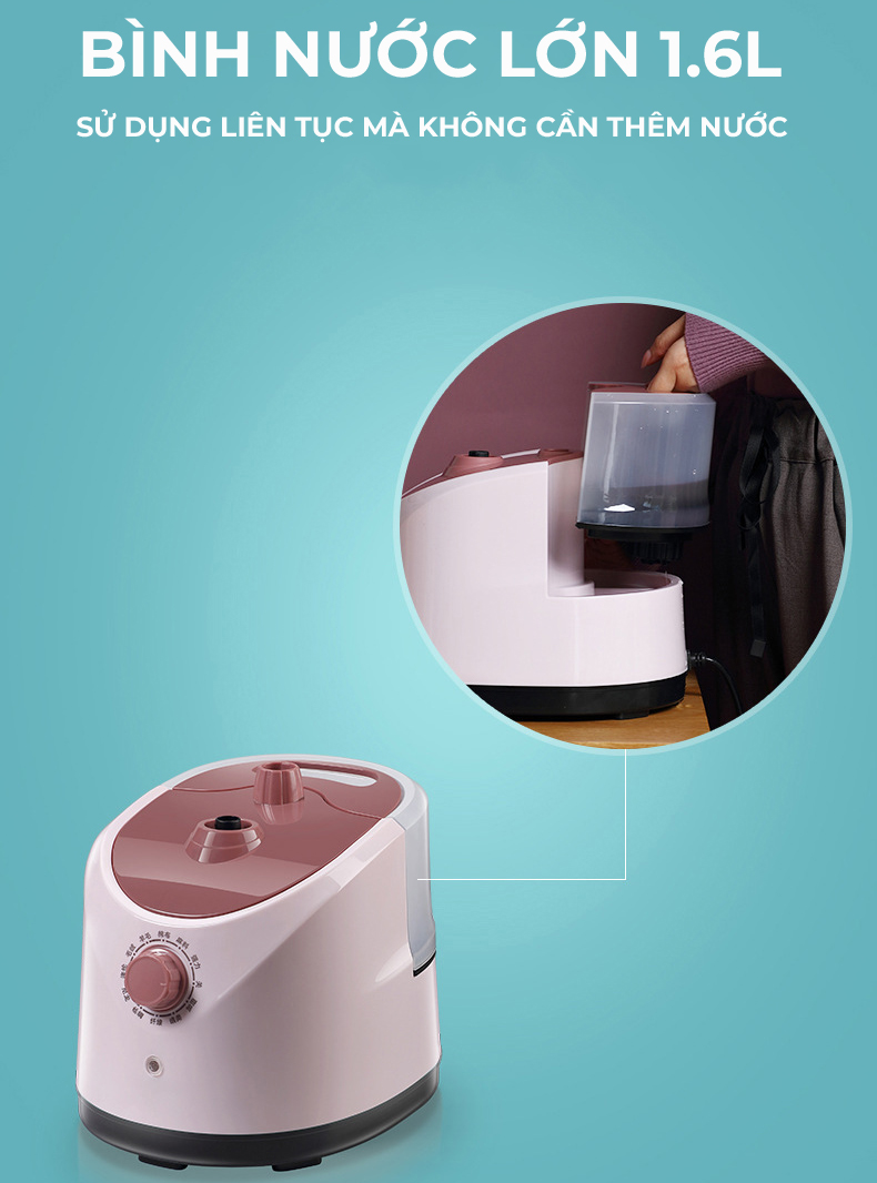 ĐẶC ĐIỂM NỔI BẬT - Mặt đế nhựa cao cấp, thiết kế lớn, bền tốt, lướt êm ái trên vải. - Dung tích bình nước 1.8 lít – sử dụng lâu, hạn chế châm nước