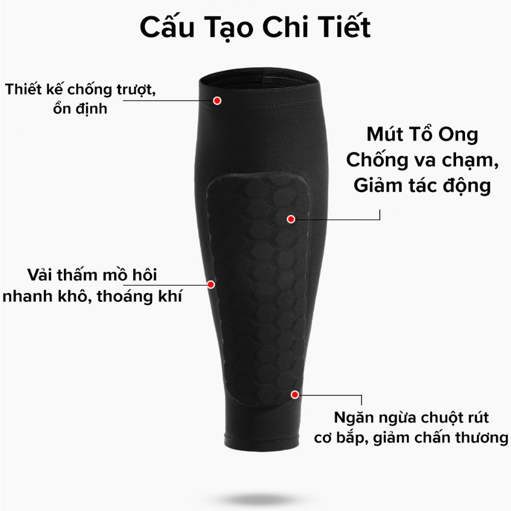 Băng đai bảo vệ bắp chân, có miếng lót đệm dày bảo vệ ống đồng khi chơi thể thao, chất liệu co giãn, thoáng khí cao cấp Băng bảo vệ ống đồng được làm từ sợi Spandex co giãn – và nylon thoáng khí, ôm chân Trọng lượng Băng đeo nặng tầm: 35g – cảm giác như không đeo – cực cuốn Băng bảo vệ bắp chân có 2 màu: Xanh và Đen và có 3 size (ưu tiên kích thước sau mới tới cân nặng): -- Size M ( 45-60kg ), chiều dài 29 cm – rộng trên: 26-32; rộng dưới: 16-19cm -- Size L ( 60-75kg ), chiều dài 30 cm – rộng trên: 28-34; rộng dưới: 18-21cm -- Size XL ( 75-95kg ), chiều dài 32 cm – rộng trên: 30-39; rộng dưới: 20-23cm Kích thước gói hàng: 23 cm 15 cm 2cm Băng đai bảo vệ bắp chân, miếng lót bảo vệ ống đồng được sử dụng trong nhiều môn thể thao: Bóng đá, bóng rổ, cầu lông, leo núi, chạy bộ, tennis … Đeo băng đai bảo vệ bắp chân giúp chống căng cơ, chuột rút khi chơi thể thao, tăng tuần hoàn máu, hỗ trợ cơ bắp hiệu quả. Đai được làm từ sợi tổng hợp nên thấm hút mồ hôi nhanh, mau khô, giúp thoải mái khi vận động. Đai đeo có lớp giáp làm từ xốp EVA cao cấp giúp vảo vệ ống đồng khi chơi thể thao