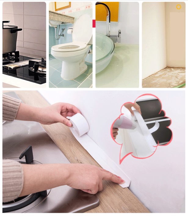 Băng keo dán bếp chống thấm nước, chống rỉ, chống dầu mỡ Sử dụngđể dán khe hở giữa các bồn rửa bát; bếp giúp tránh rò nước; hay các nơi có khe hở dễ bám