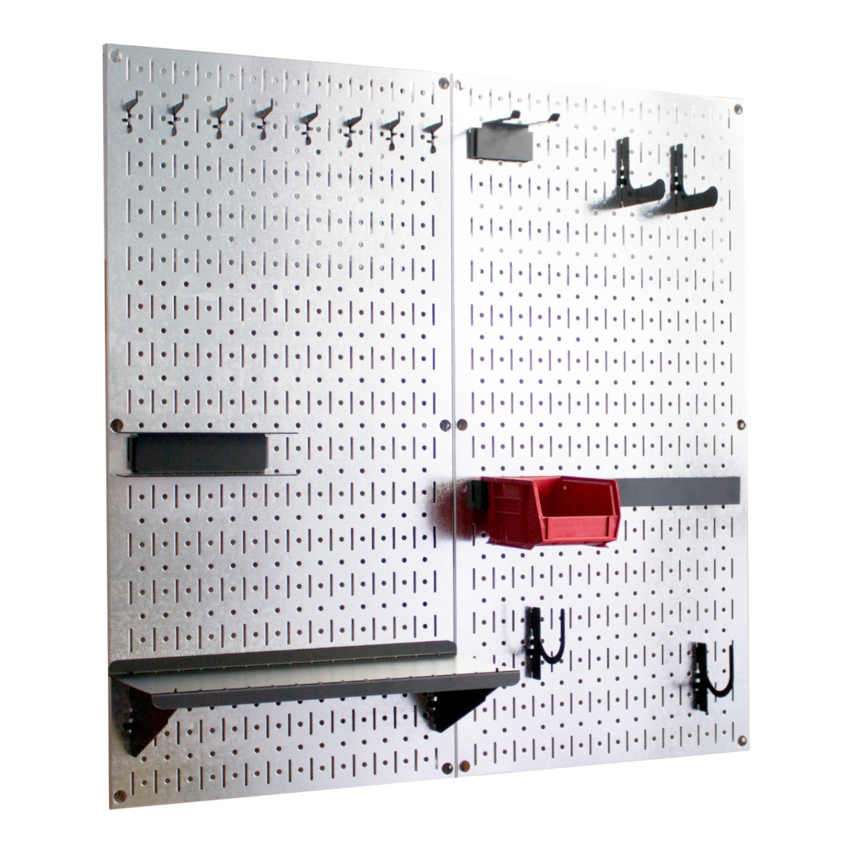 Bảng treo dụng cụ Pegboard cơ khí WB2 (hay còn gọi là bảng treo tường đồ nghề cơ khí) là sự kết hợp mô đun 02 bảng Pegboard đứng có tổng kích thước 80cmx80cm và bộ sưu tập các phụ kiện được thiết kế riêng giúp tổ chức các dụng cụ cơ khí và mở rộng tối đa không gian nhà kho của bạn. Các phụ kiện sử dụng chung với bảng Pegboard Kim Loại được thiết kế để có thể linh hoạt tháo lắp và thay đổi vị trí nhằm đáp ứng nhu cầu sử dụng đa dạng. Ngoài ra bảng Pegboard Kim Loại cũng có khả năng hút và sử dụng với các vật dụng từ tính như miếng magnet trang trí tủ lạnh, ghi chú, ảnh kỷ niệm.