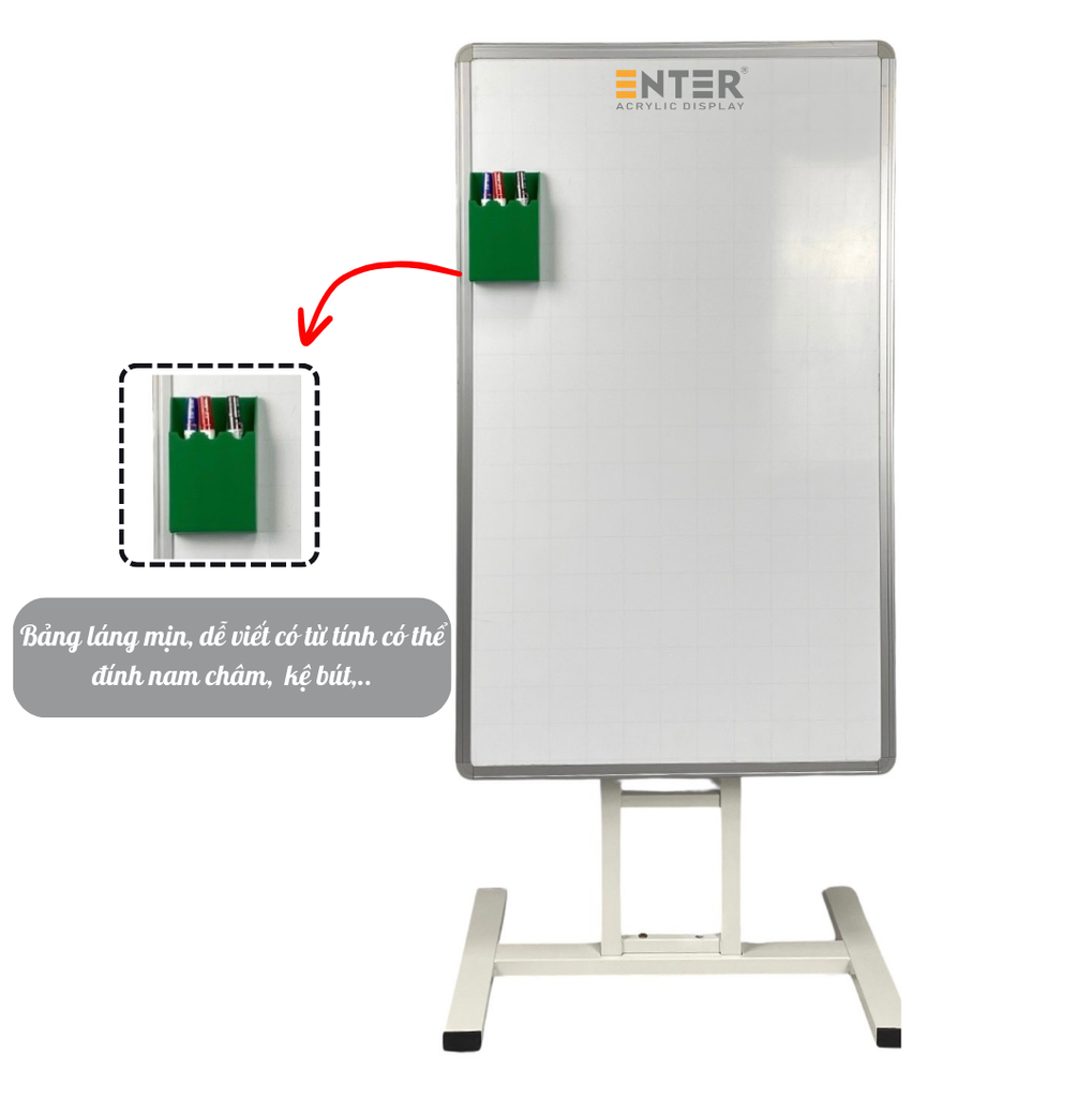 Sản phẩm được tặng kèm 3 Bút lông bảng TL WB-03 (xanh, đỏ, đen) và 1 Kệ bút lông bảng Enter H16B có nam châm (màu ngẫu nhiên). Mô tả sản phẩm Quy cách: