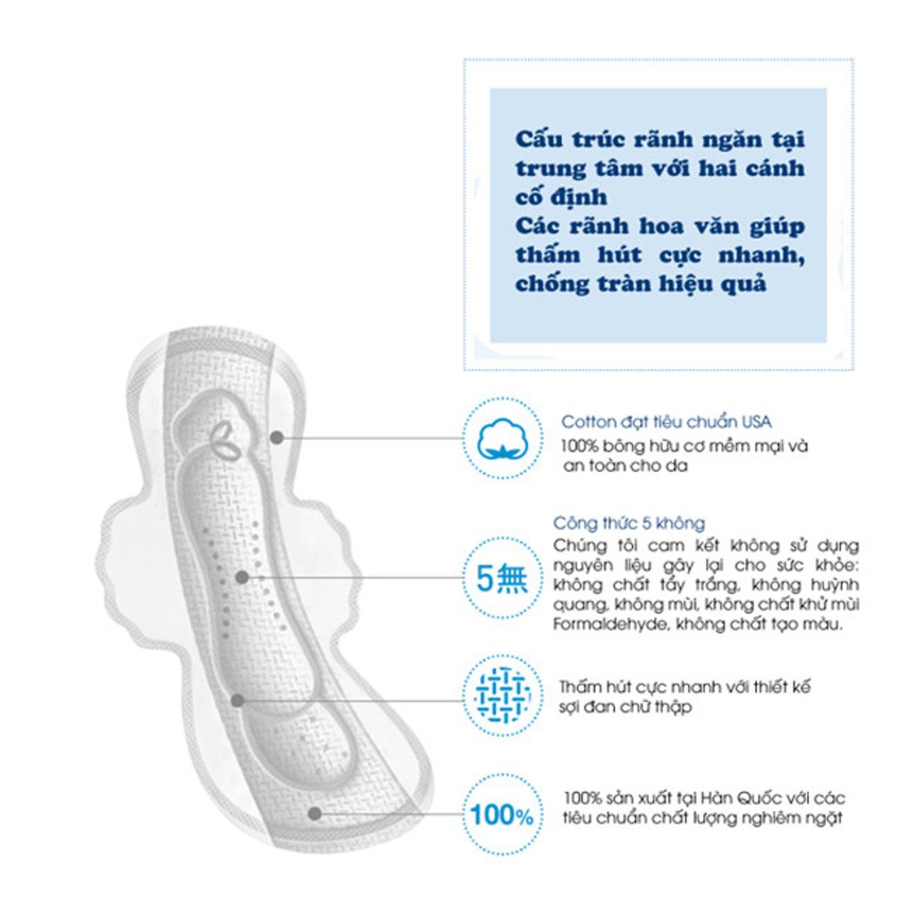 Với thiết kế đặc biệt dành riêng cho ban đêm như: rãnh chống tràn an toàn bề mặt mềm mịn (lưới lụa cao cấp giúp thấm hút nhanh chống thấm ngược nếp gấp 2 lần… tạo