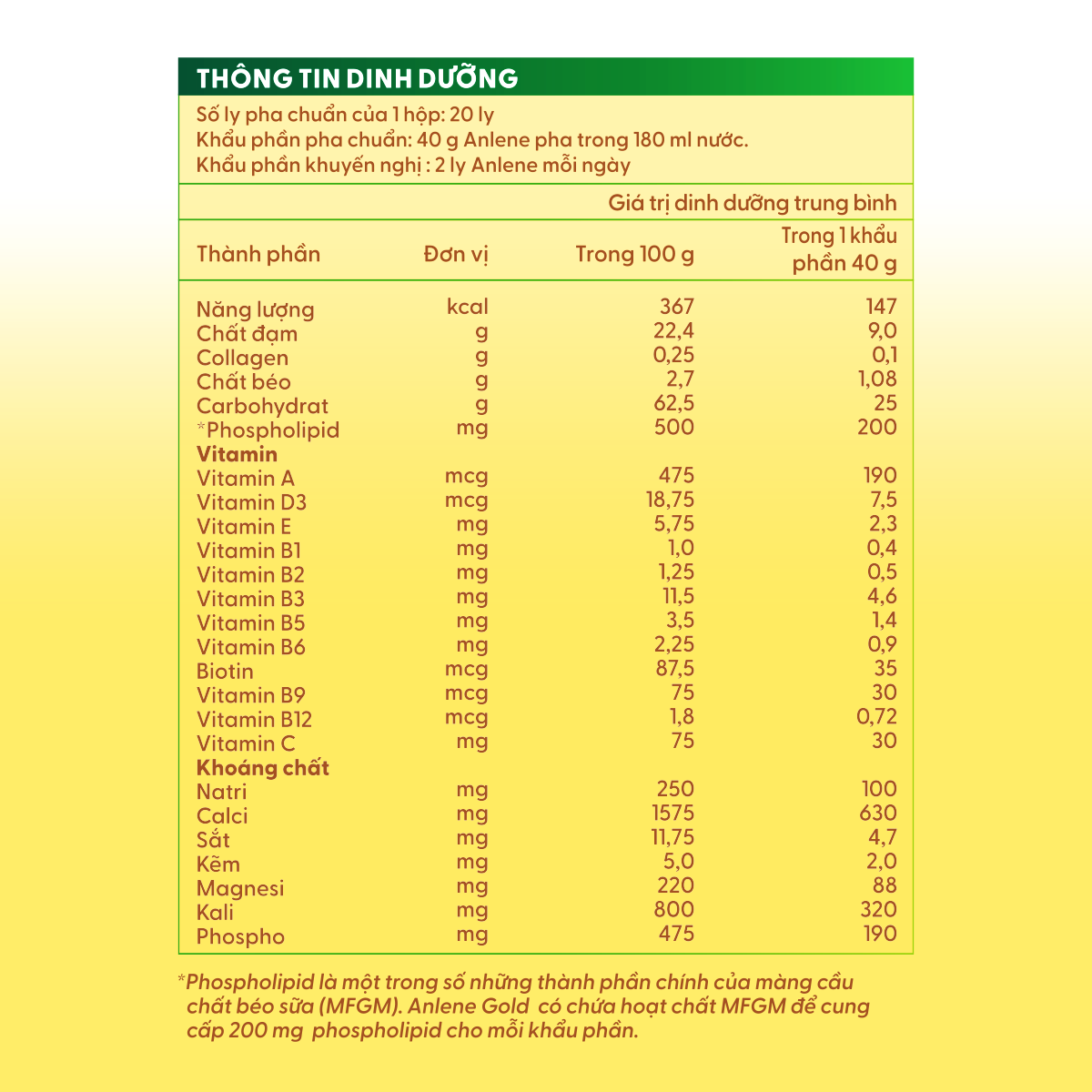 SỮA ANLENE GOLDAnlene Gold là sản phẩm sữa chứa hệ dưỡng chất MovePro cung cấp dinh dưỡng tăng cường với hoạt chất MFGM được KIỂM NGHIỆM LÂM SÀNG giúp cơ thể thêm linh hoạt và Vitamin B tiếp thêm năng lượng.