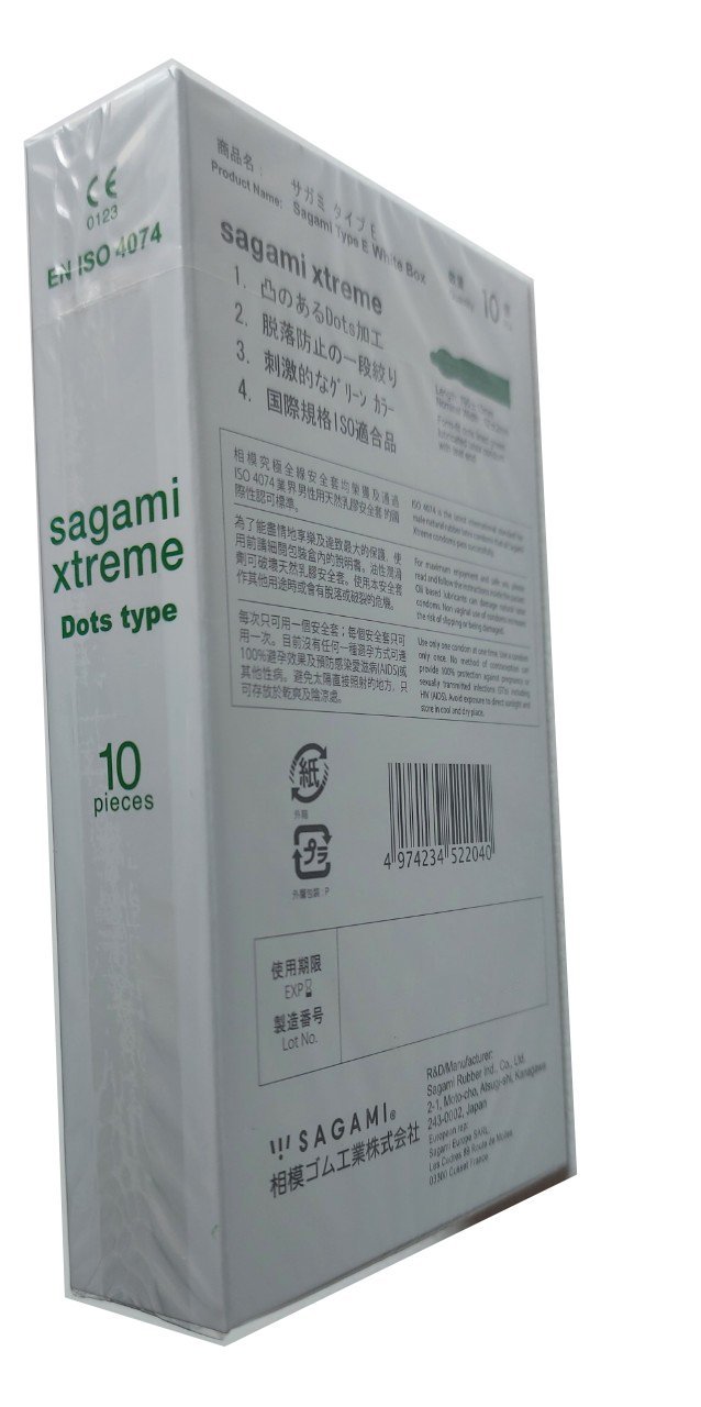 - Bao cao su Sagami White Box là dòng sản phẩm có gai nhỏ - chấm nổi, một lần thắt, nhiều chất bôi trơn của Sagami – Nhà sản xuất bao cao su đầu tiên tại Nhật Bản. TÍNH NĂNG SẢN PHẨM Bao cao su Sagami Xtreme White