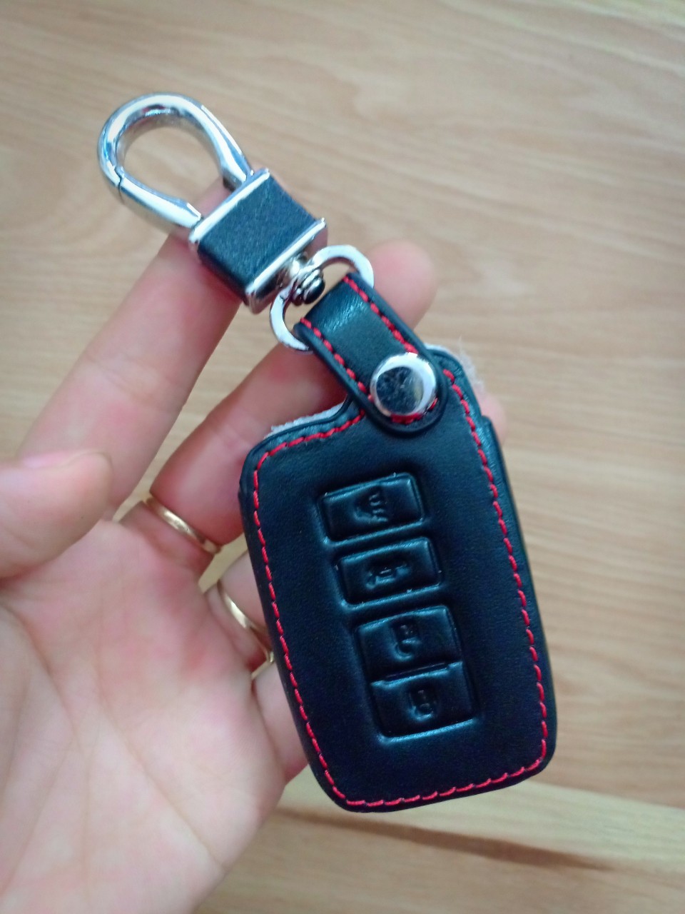 - Sản phẩm làm bằng da, có móc chắc chắn để cài vào đĩa lưng quần không sợ thất lạc chìa khóa