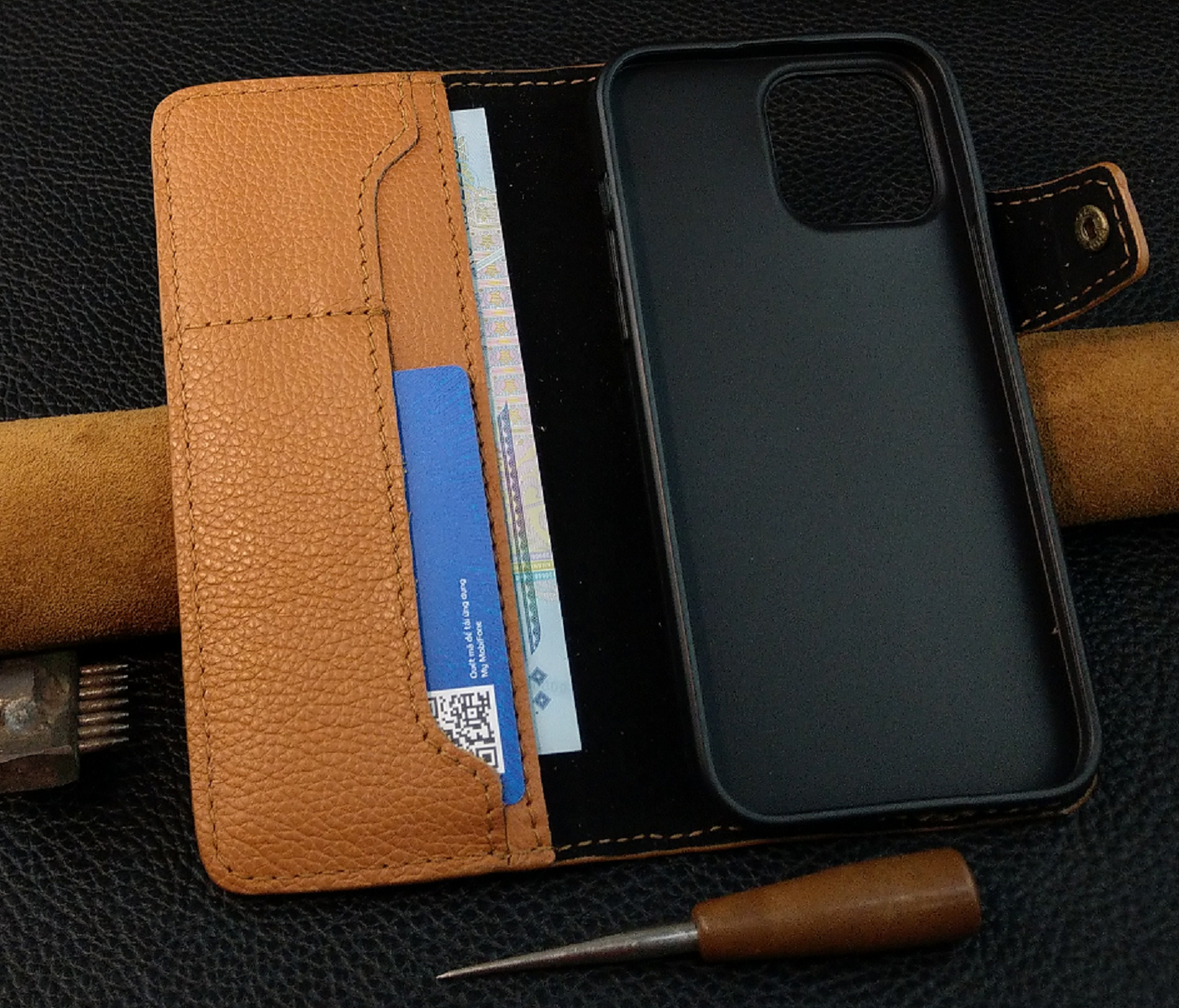 Bao da thật iPhone 15 pro max (iP12-13-14 pro max), da bò nguyên miếng bền bỉ, thủ công 90%