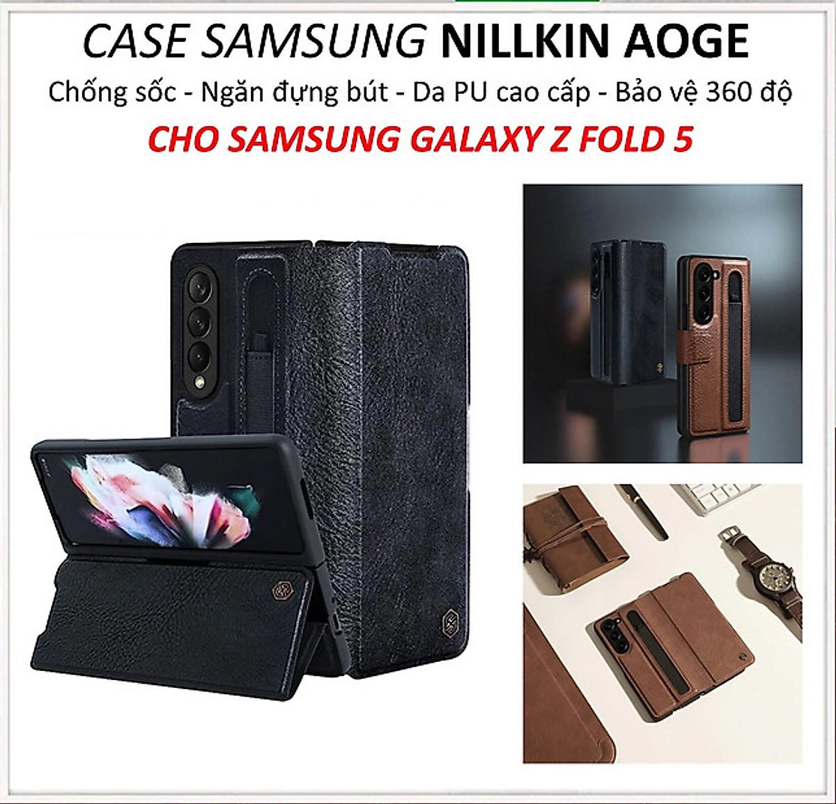 Bao da chống sốc cho Samsung Galaxy Z Fold 5 trang bị ngăn đựng S-Pen hiệu Nillkin Aoge Leather Cover Case (bảo vệ máy cực tốt, chất liệu da thật cao cấp, thiết kế thời trang cá tính) TRANG BỊ N...