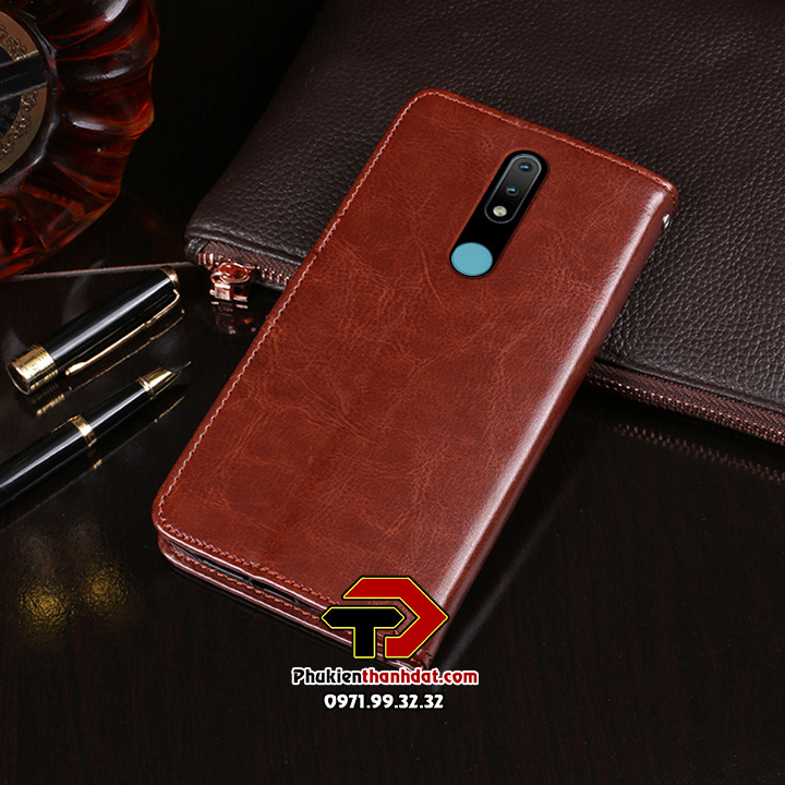 Bao da dạng ví có quai gài được làm từ chất liệu da cao cấp, bền chắc, rất khó bị trầy, bong tróc và khó bám bẩn. Mặt trước bao da có ngăn đựng tiền,