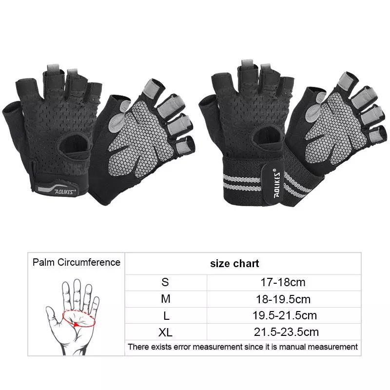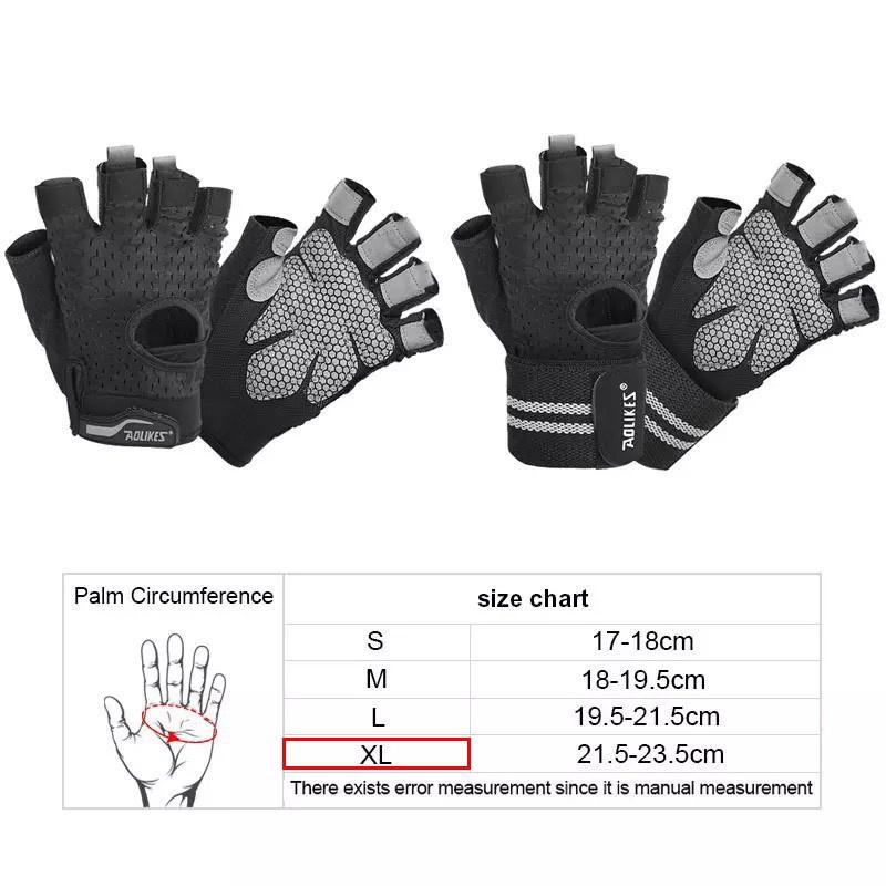 Găng Tay Nửa Ngón Tập Gym, Tập Tạ Tích Hợp Quấn Cổ Tay Aolikes AL113B AL113 113 (1 đôi) - Chính Hãng ---- BẢNG SIZE TRONG PHẦN HÌNH ẢNH ----- - Cách chọn size +