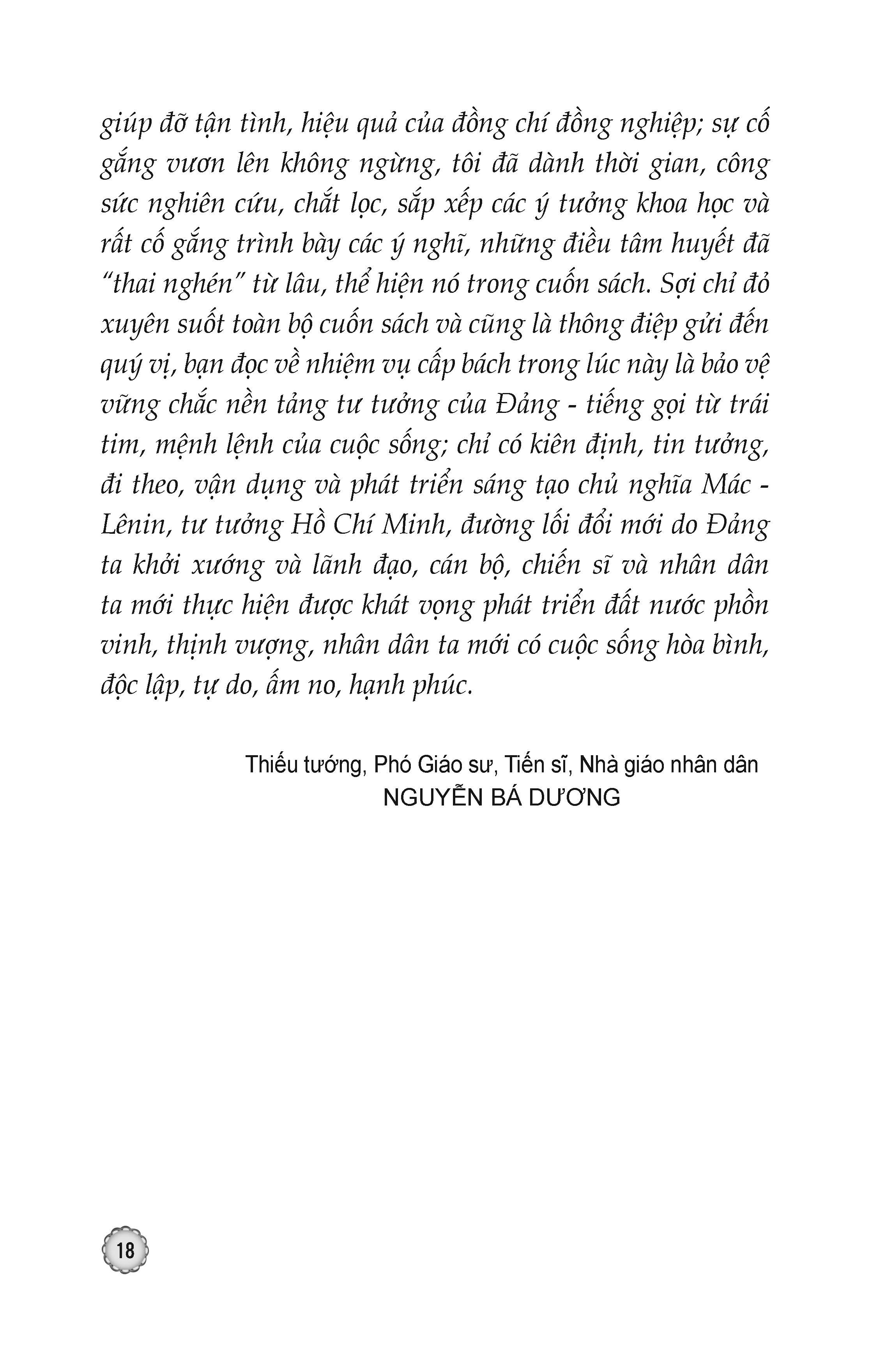 Cuốn sách tuyển chọn các bài nói, bài viết, bài phát biểu, trả lời phỏng vấn, thư, điệ của đồng chí Tổng Bí thư Nguyễn Phú Trọng, thể hiện tư tưởng nhất quán, xuyên suốt