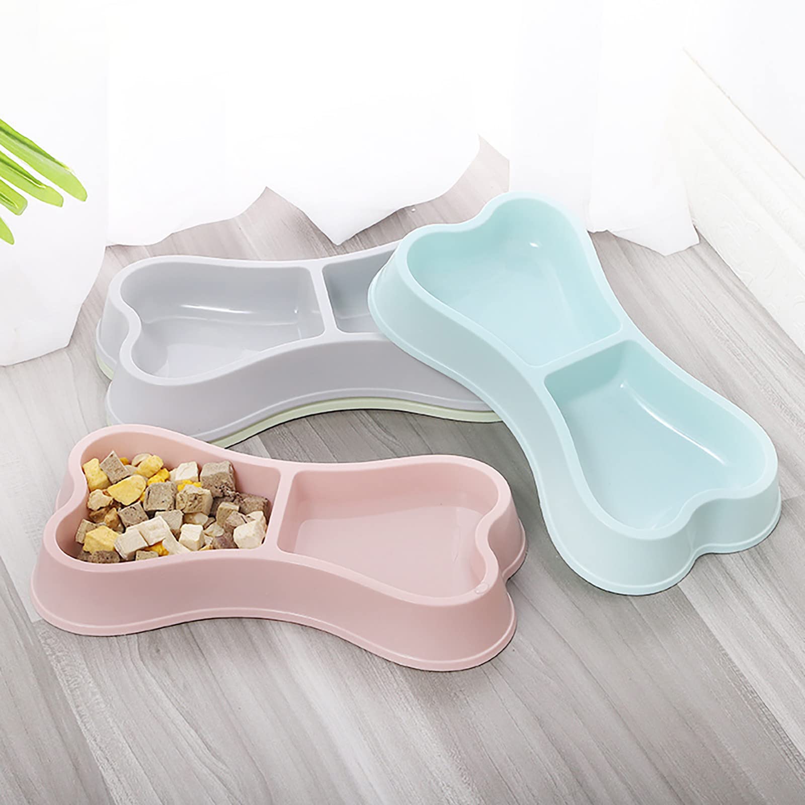 Bát ăn đôi cho chó mèo hình khúc xương được làm từ chất liệu nhựa cao cấp không gây hại, không làm ảnh hưởng đến chất lượng thức ăn, màu sắc bất mắt giúp thú cưng