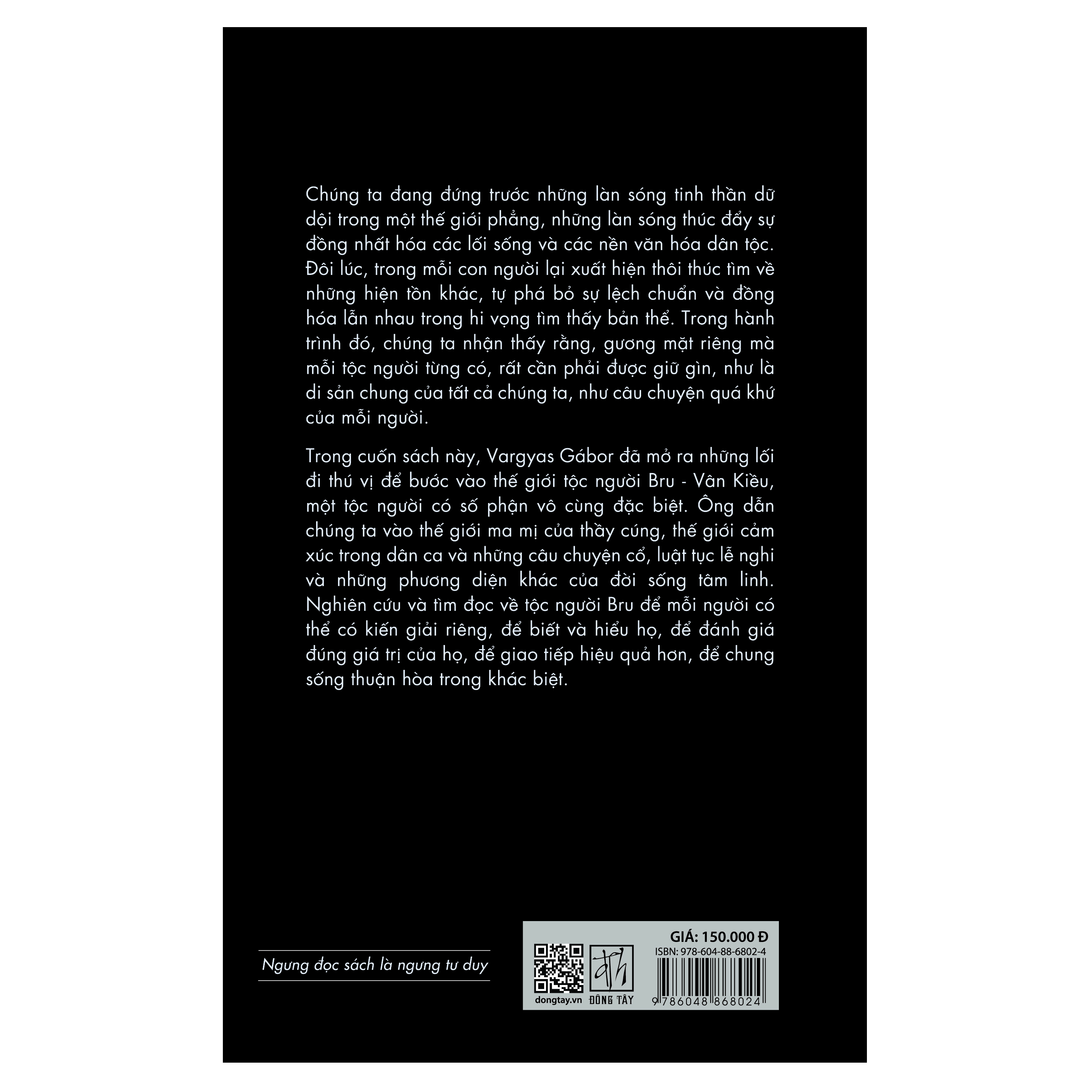Chúng ta đang đứng trước làn sóng tinh thần dữ dội  trong một thế giới phẳng, những làn sóng thúc đẩy sự đồng nhất hóa các lối sống và các nền văn hóa dân tộc. Đôi lúc, trong mỗi con người lại xuất hiện thôi thúc tìm về những hiện tồn khác, tự phá bỏ sự lệch chuẩn và đồng hóa lẫn nhau trong hy vọng tìm thấy bản thể. Trong hành trình đó, chúng ta nhận thấy rằng, gương mặt riêng mà mỗi tộc người từng có, rất cần phải được giữ gìn, như là di sản chung của tất cả chúng ta, như câu chuyện quá khứ của mỗi người. Trong cuốn sách này, Vargyas Gábor đã mở ra những lối đi thú vị để bước vào thế giới tộc người Bru - Vân Kiều, một tộc người có số phận vô cùng đặc biệt. Ông dẫn chúng ta vào thế giới ma mị của thầy cúng, thế giới cảm xúc trong dân ca và những câu chuyện cổ, luật tục lễ nghi và những phương diện khác của đời sống tâm linh. Nghiên cứu và tìm đọc về tộc người Bru để mỗi người có thể có kiến giải riêng, để biết và hiểu họ, để đánh giá đúng giá trị của họ, để giao tiếp hiệu quả hơn, để chung sống thuận hòa trong khác biệt.