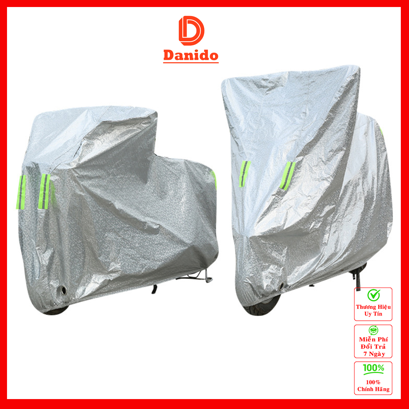 Bạt Trùm Xe Máy Tráng Bạc Che Mưa Nắng Thời Tiết Khắc Nghiệt Loại Lớn Cho Dòng Xe Tay Ga - Xe Số Thông Dụng Size L cho xe dưới 2.05m Size XL cho xe dưới 2.27m Chính Hãng                Xe máy là phương tiện phổ biến và thông dụng của người Việt Nam trên mọi nẻo đường; tuy nhiên đậu xe ngoài trời đặc biệt trong thời tiết nắng nóng sẽ gây hại cho xe máy rất nhiều, có thể làm hỏng lớp sơn, nóng yên xe, hoặc gây nổ lốp, Thấu hiều điều này, nay D Danido chúng tôi cung cấp và phân phối ra thị trường Bạt Trùm Xe Máy Tráng Bạc Che Mưa Nắng Thời Tiết Khắc Nghiệt Loại Lớn Cho Dòng Xe Tay Ga - Xe Số Thông Dụng để đáp ứng phù hợp với đại đa số các dòng xe trên thị trường hiện giờ!                 Ưu điểm và tính năng vượt trội của Bạt Trùm Xe Máy Tráng Bạc Che Mưa Nắng: