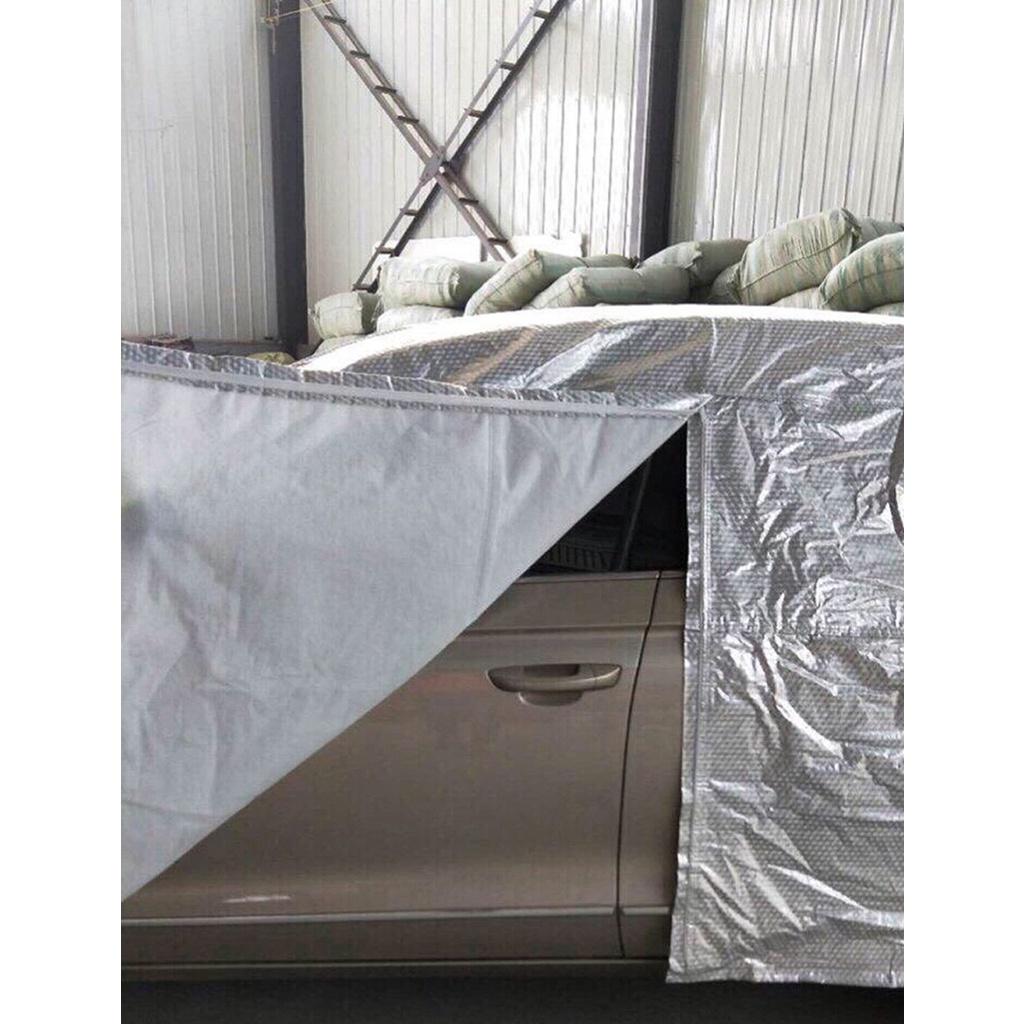 Bạt phủ xe ô tô 7 chỗ 3 lớp tráng nhôm cách nhiệt, chống nóng, chống thấm, chống bụi bẩn - Bạt phủ xe có mặt ngoài là chất liệu vải PEVA tráng nhôm phản