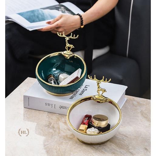 ✨Bát Sứ Đựng Kẹo Phụ Kiện Decor 2022 | Âu Sứ Decor Kẻ Vàng Kim Vân Nổi Hình Hươu Mạ Vàng ( Hàng Có Sẵn )