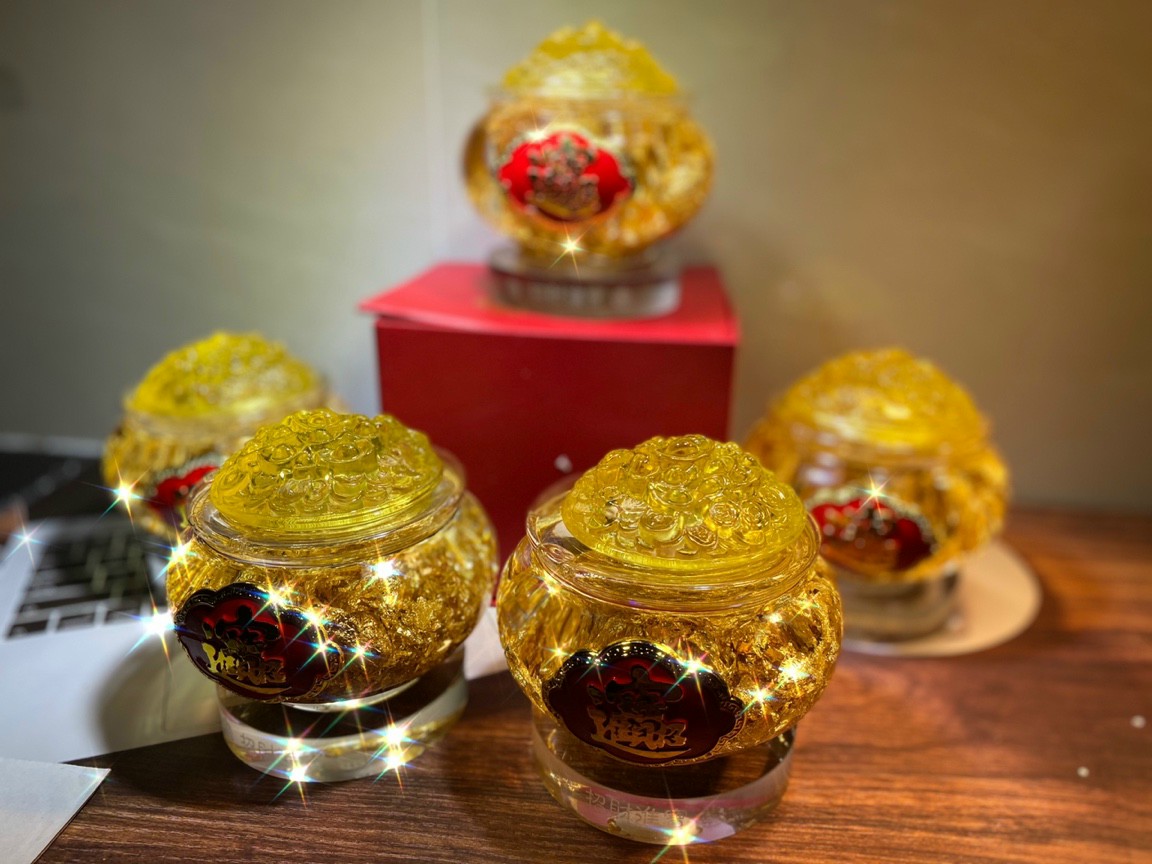Túi vàng lá đế thủy tinh Thần Tài phong thủy - sung túc chiêu Tài đón Lộc