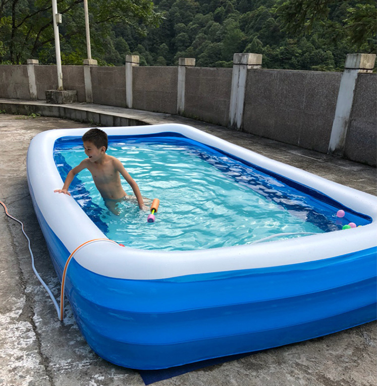 Hồ bơi thiết kế lớn có thể cho 3 bé cùng bơi Chất liệu pvc an toàn Đáy hồ bơm hơi ngồi êm ái Hồ cao 3 tầng