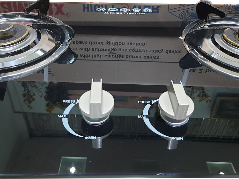 - Chất liệu mặt bếp: Kính cường lực dày 8mm chịu nhiệt, chịu lực, bo cạnh