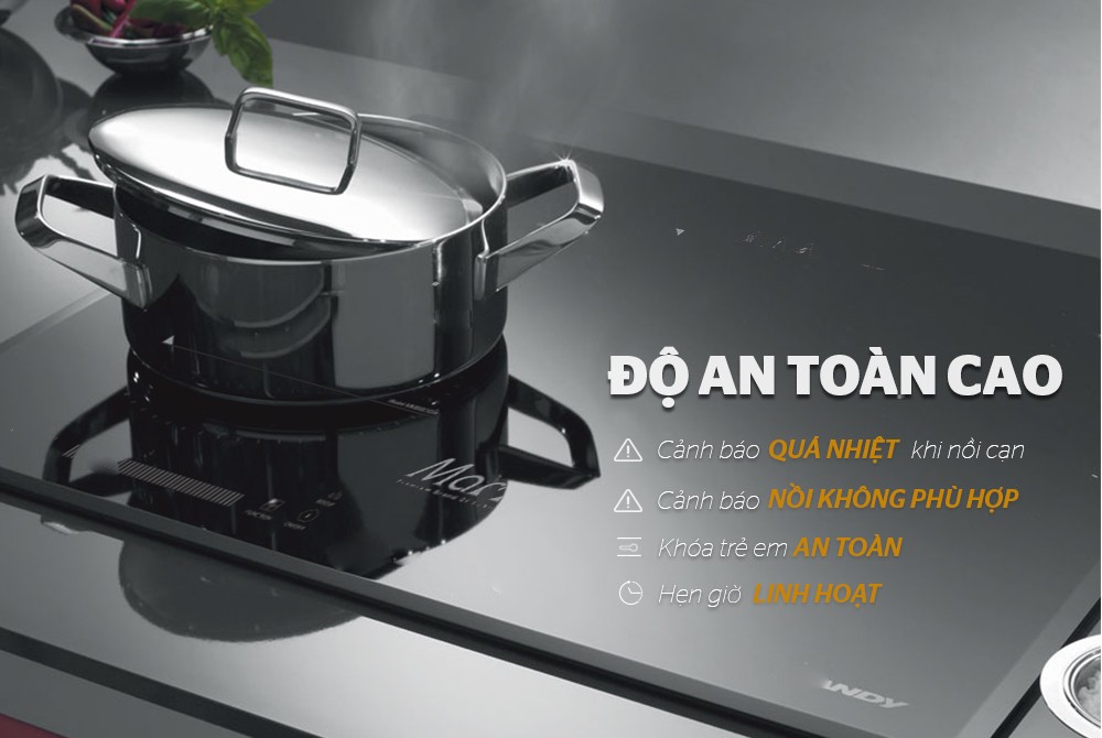 Bếp đôi điện từ SUNHOUSE MAMA MMB9201DIH được trang bị nhiều tính năng an toàn hiện đại như hẹn giờ, khóa trẻ em mang đến trải nghiệm nấu ăn hoàn toàn khác biệt so với các mẫu bếp truyền thống.
