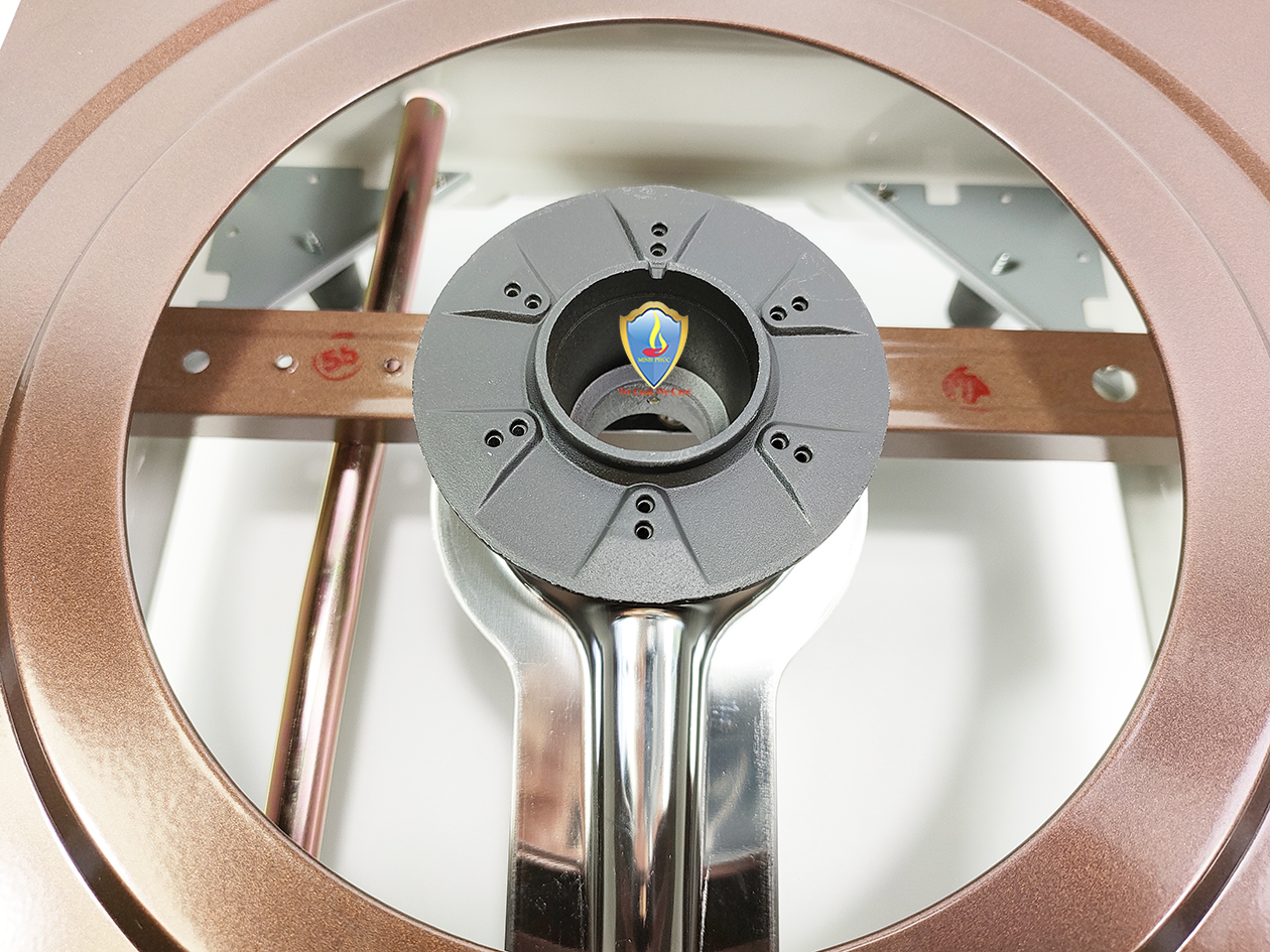 Đầu đốt bếp bằng hợp kim nhôm giúp cho bếp luôn có ngọn lửa xanh, đẹp. Từ đó, bếp luôn đảm bảo đốt cháy toàn bộ lượng gas phát sinh trong khi đun nấu, không lo những khí thải độc hại do lượng gas dư thừa không được đốt hết.