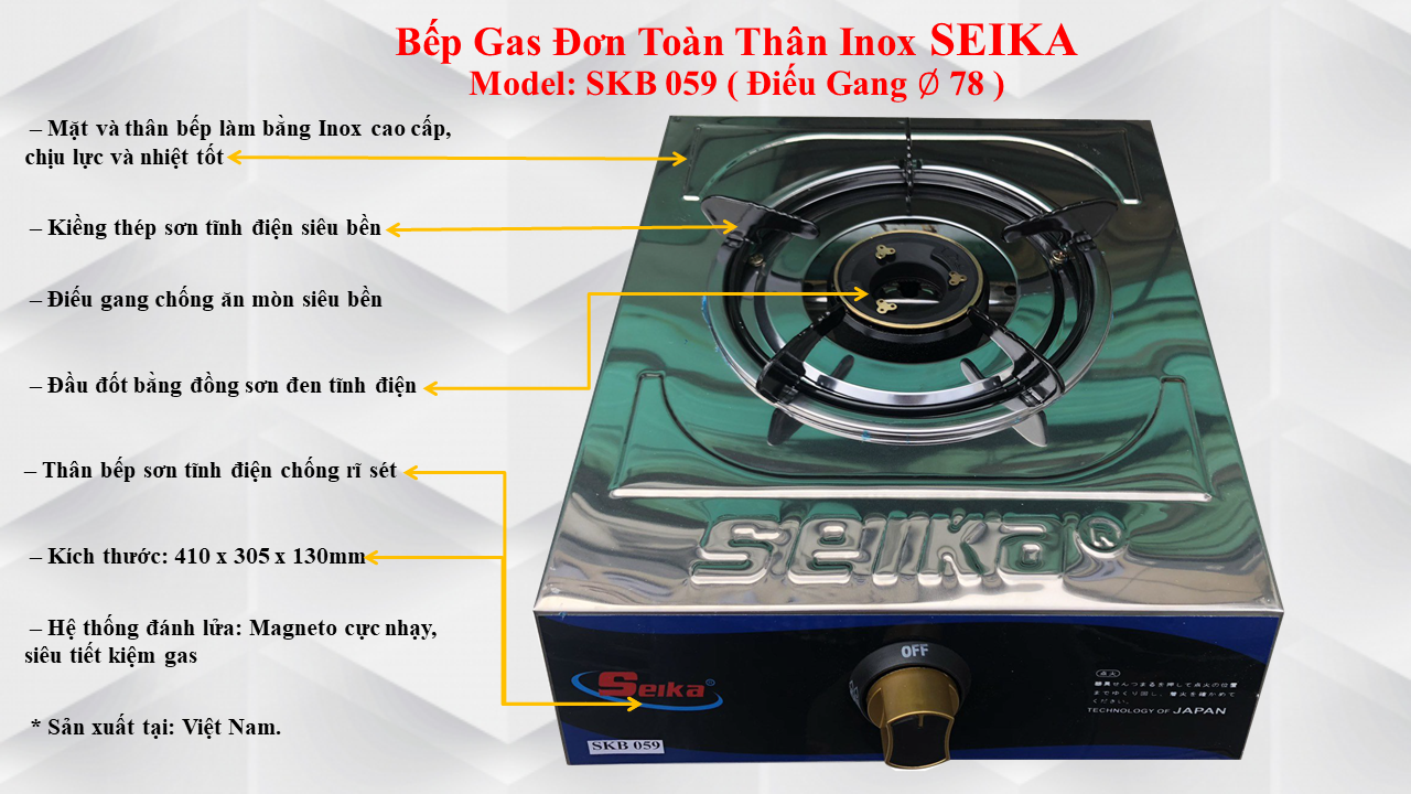 ✨Bếp Gas Đơn Toàn Thân Inox Seika SKB059 - Hàng Chính Hãng