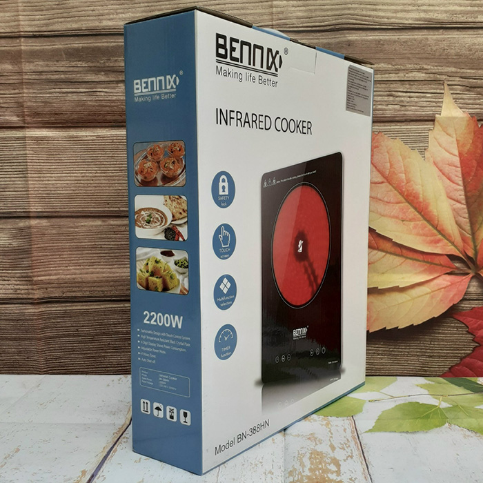 Bếp hồng ngoại Bennix BN-388H có thiết kế nhỏ gọn cùng màu đen sang trọng kết hợp với các họa tiết giúp sản phẩm trở nên bắt mắt, phong cách, góp phần làm tăng nét trẻ trung cho không gian bếp của bạn.