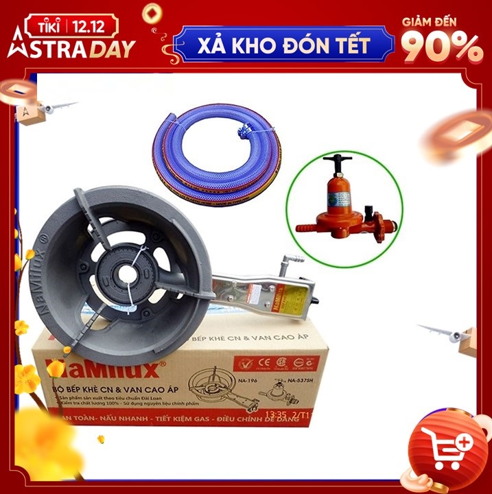 Tên sản phẩm: Bếp khè gas công nghiệp Namilux Tặng kèm 1 van ga cao áp Namilux + 2m dây ga Thái chuyên dụng + 2 cổ dê (đai thép)