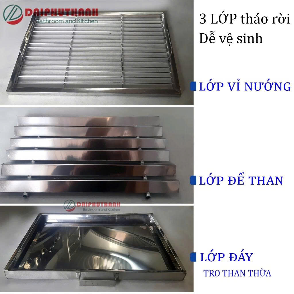 ✨Bếp Nướng Lò Nướng Than Inox 50x35cm - Chiều cao 29cm, 3 lớp tháo rời dễ vệ sinh
