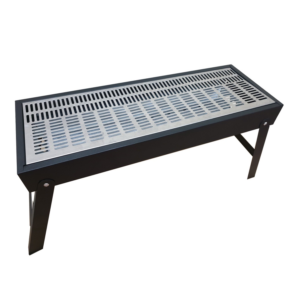 Bếp nướng than hoa BBQ ngoài trời - Kích thước: 62 x 22,5x6.5 cm - Chất liệu: thép + inox chống gỉ. ĐẶC ĐIỂM NỔI BẬT: – Sử dụng được than hoa và than không