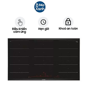 - Bếp điện từ Bosch 5 vùng nấu cảm ứng từ 1 x Ø 400mm x 240mm, 3.3 KW (có thể tăng đến 3.7 KW) hoặc 2 x Ø 200mm, 2.2 KW (có thể tăng đến 3.7 KW); 1 x Ø 300mm x 240mm, 2.6 KW (có thể tăng đến 3.7 KW); 1 x Ø 400mm x 240mm, 3.3 KW (có thể tăng đến 3.7 KW) hoặc 2 x Ø 200mm, 2.2 KW (có thể tăng đến 3.7 KW);