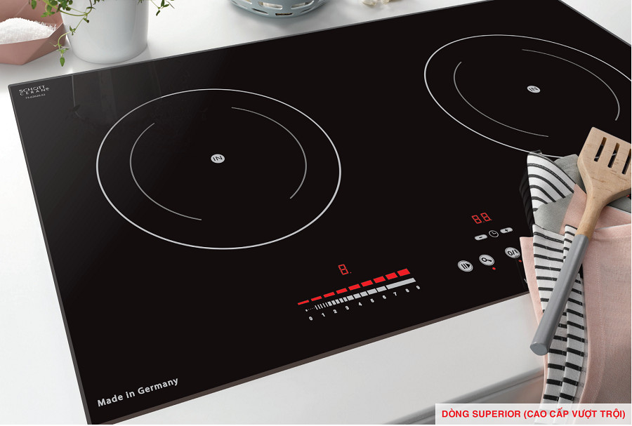 • Bếp 02 từ • Mặt kính Schott Ceran Made in Germany siêu bền, chịu lực chịu sốc nhiệt • Bo mạch EGO Made in Germany • Đầu đốt EGO Made in Germany • Điều