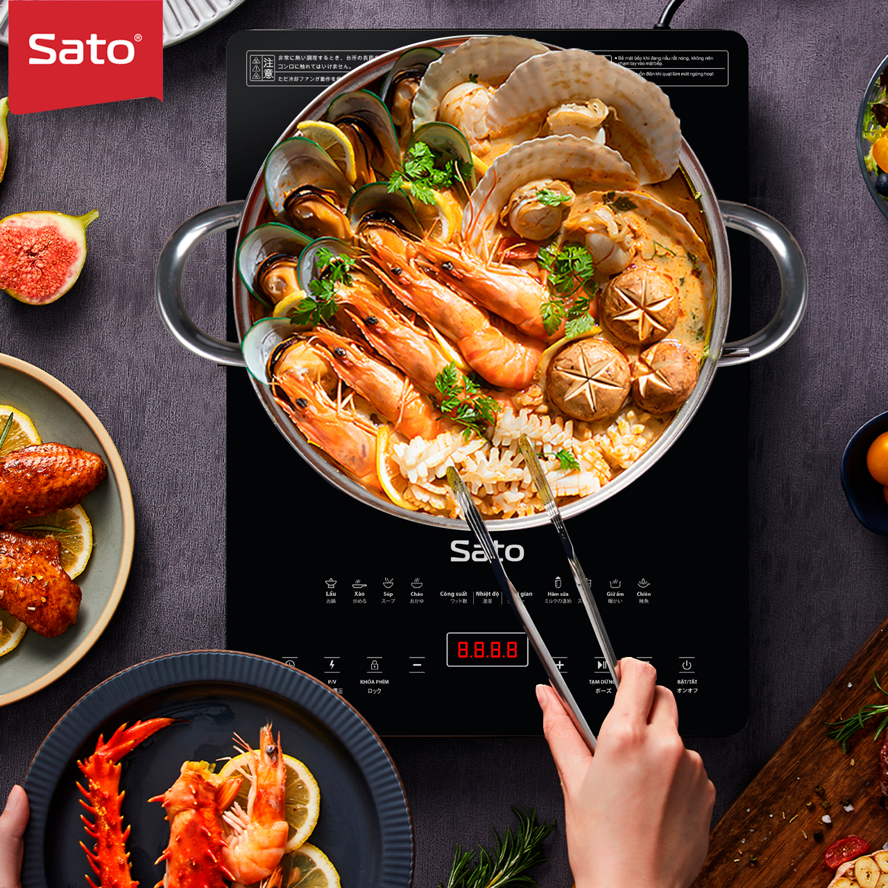 Thiết kế nhỏ gọn, công suất lớn Bếp Từ Đơn Sato STB - 201 có thiết kế nhỏ gọn, linh hoạt với màu đen hoa văn bắt mắt, thích hợp cho những bữa liên hoan