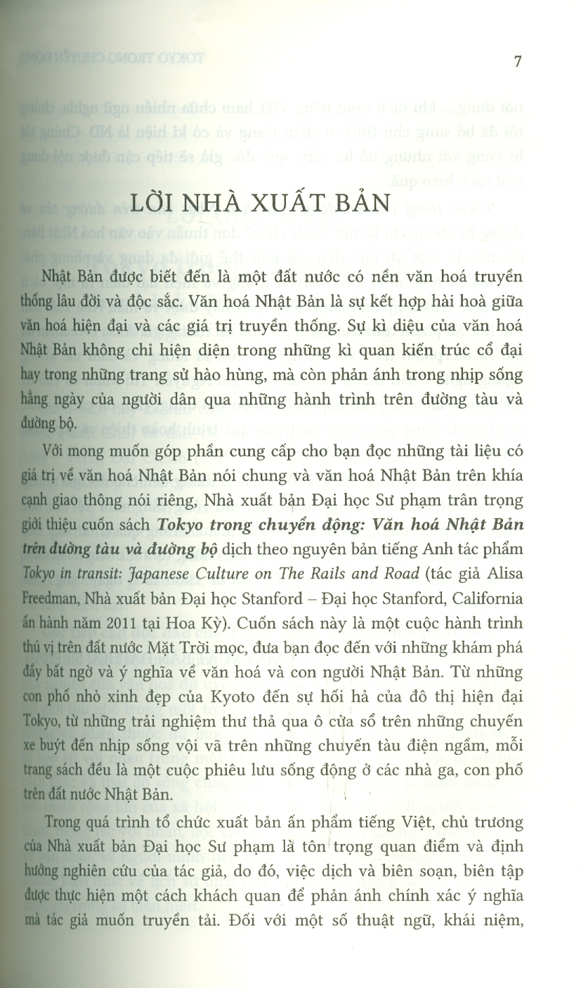 Từ những toa tàu đông đúc đến những con phố không bao giờ ngủ, Tokyo trong chuyển động: Văn hóa Nhật Bản trên đường tàu và đường bộ của Alisa Freedman không chỉ nghiên cứu hệ thống giao thông công cộng của Tokyo, mà còn là tấm gương phản chiếu xã hội Nhật Bản dưới một cách tiếp cận liên ngành độc đáo,