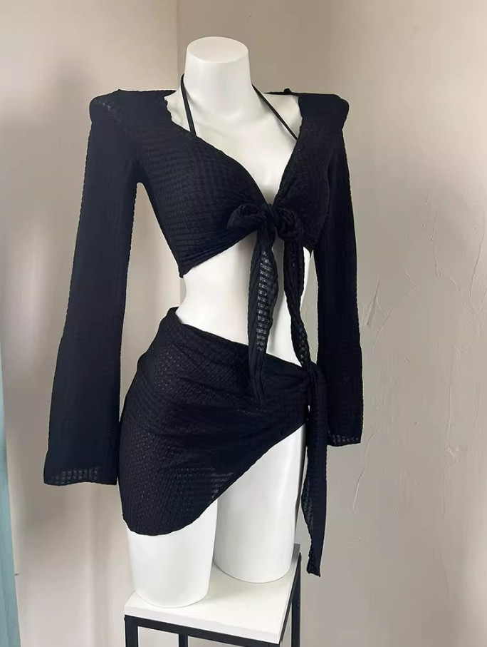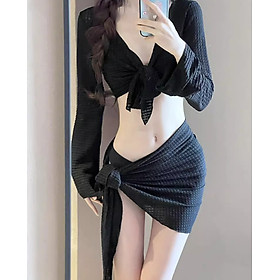 Set Đồ Bơi Nữ Rời Đùi Dài Tay Đi Biển Đi Bơi Chất liệu Polyester 95%, mật độ dệt vừa Áo có sẵn lớp đệm, hông áo có thể rút lên làm croptop cá tính